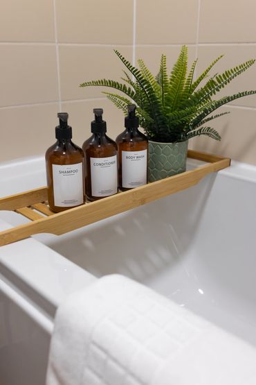 Finally, the family bathroom is spacious, containing a toilet, sink, full-sized bath and super power-shower. We provide body wash, hand wash, shampoo and conditioner for guests to use, along with Egyptian cotton towels, so no need to bring your own.