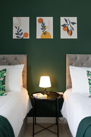 The second bedroom contains as standard two twin beds - but these can be connected to form a second king bed should you wish. In this bedroom there is a large wardrobe and a dedicated work space for those who need to get some work / homework done in peace.